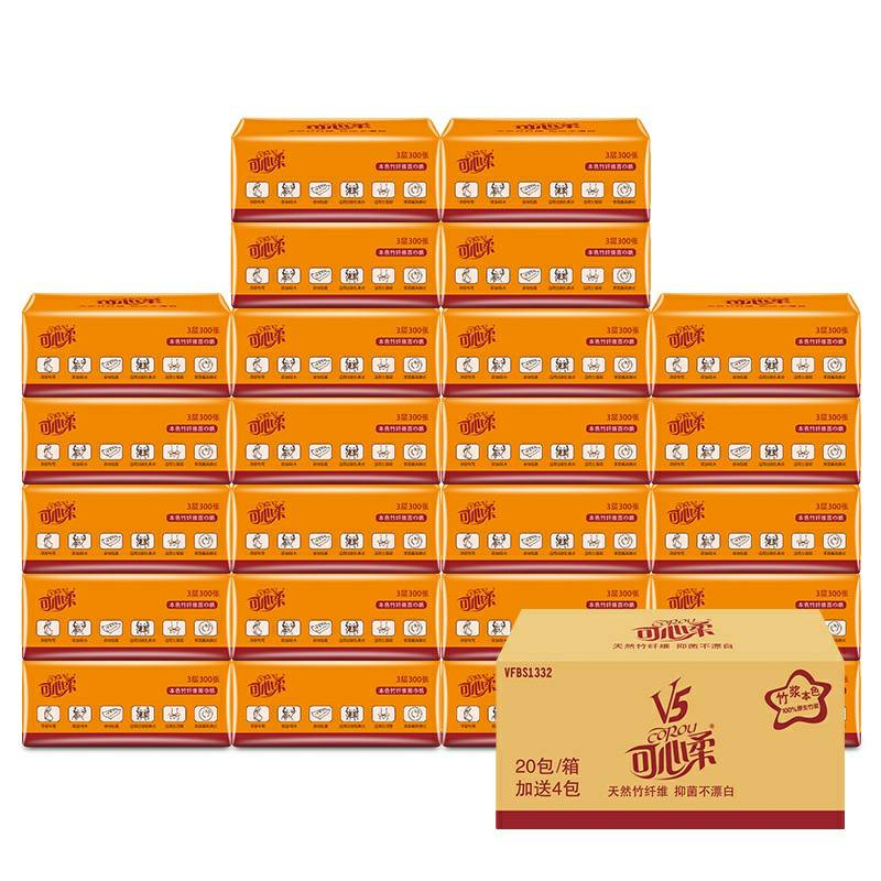 可心柔 V5系列CoRou云柔系列白色木浆60抽